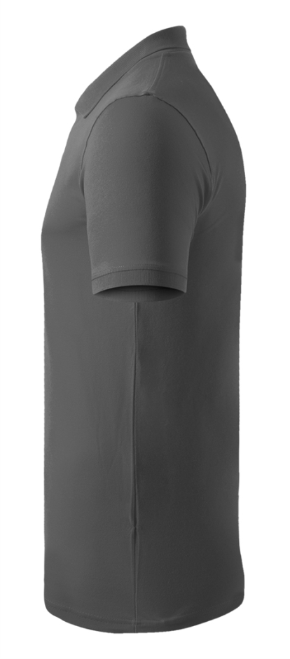 Поло маица, шиена од страна, дупли штепови на дното, ранфли околу ракавите, три копчиња во боја на маицата, резервно копче, зајакната со лента по должина на вратот и дополнителни штепови по должина на рамената